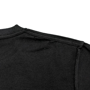 Tシャツは5.6オンス(やや厚手)のハイクオリティーヘビーウェイトTシャツを使用。「よれない・透けない・長持ちする」Tシャツです。左右両肩ラインから首後ろまでタコバインダーでテープ処理してあることで、型崩れを防いでいます。