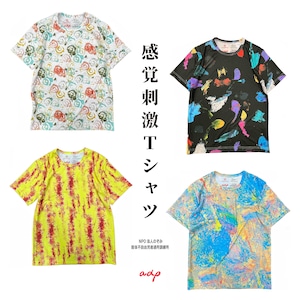 NPO法人のぞみ肢体不自由児者通所訓練所の皆さんが描いた感覚刺激アートをTシャツにアレンジしました。手描きの魅力を全面プリントでお楽しみいただけます。